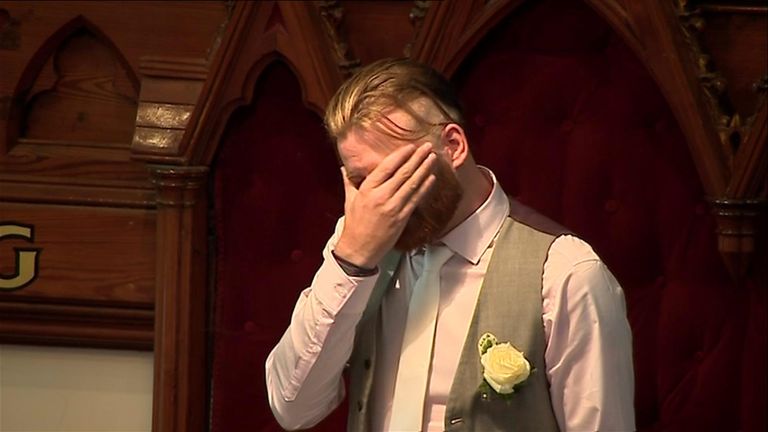 As music played at the end of the service, a bubble machine sent bubbles drifting above the mourners' heads.