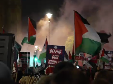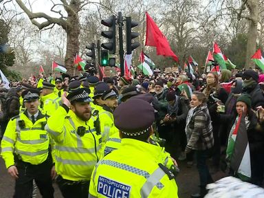 Video, 0 minutes 53 seconds Video 0:53 Gaza protest blocked Westminster Bridge 6 Jan 20246th January 2024 UK
