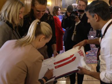 Video, 1 minute 15 seconds Video 1:15 Sunak attends kickabout with Lionesses 8 Mar 20238th March 2023 UK