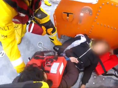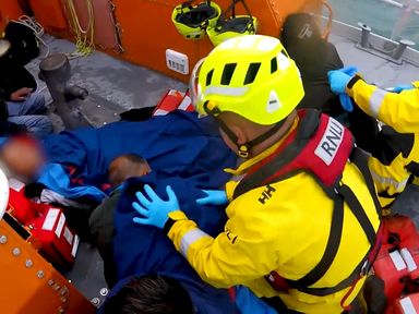 Dramatic footage shows RNLI lifeboat crew pulling family from stricken dinghy in the Channel 19 Oct 202219th October 2022 UK