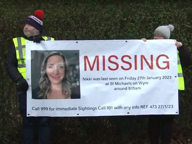 Video, 0 minutes 42 seconds Video 0:42 Signs displayed for missing Nicola Bulley 3 Feb 20233rd February 2023 UK