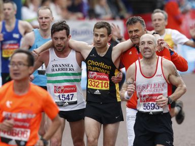 Marathon hero helps struggling runner over line