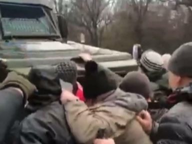 Video, 1 minute 36 seconds Video 1:36 Protesters block Russian military vehicles 1 Mar 20221st March 2022 World