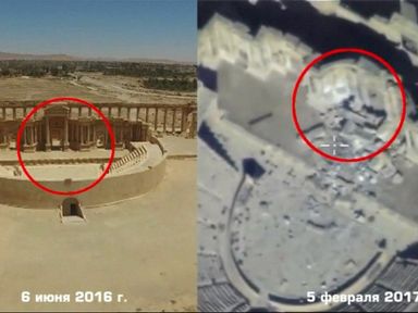 Video, 0 minutes 38 seconds Video 0:38 Russian drone reveals IS destruction in Palmyra 13 Feb 201713th February 2017