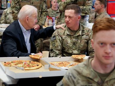 Video, 1 minute 34 seconds Video 1:34 Biden shares pizza with US troops 25 Mar 202225th March 2022 World