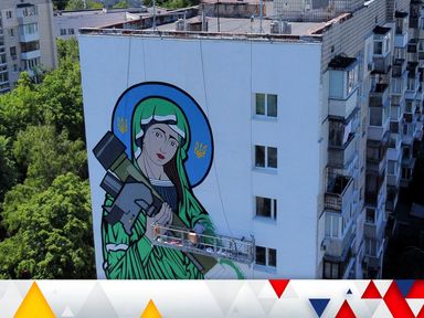 Giant mural of Saint Javelin meme painted in Kyiv outrages church organisation 26 May 202226th May 2022 World