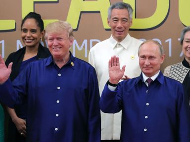 Video, 0 minutes 35 seconds Video 0:35 Matching outfits and warm handshake for Trump and Putin 11 Nov 201711th November 2017