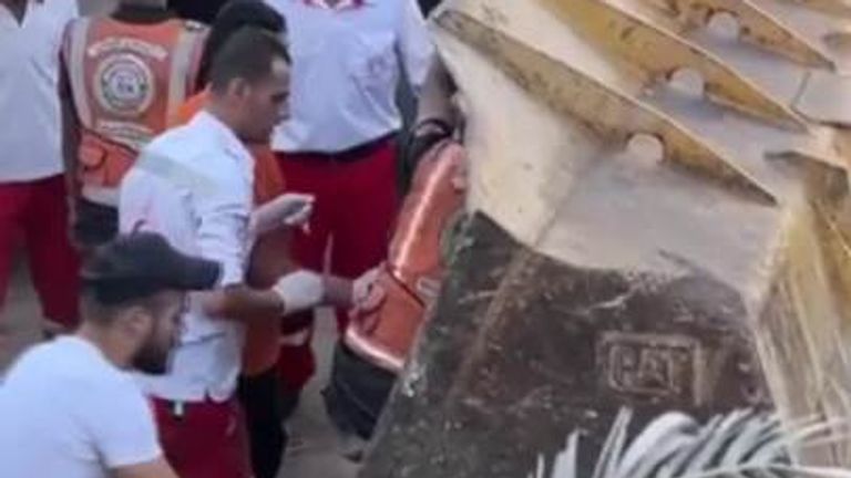 Gaza: Bulldozer carries woman to ambulance after Israeli airstrike