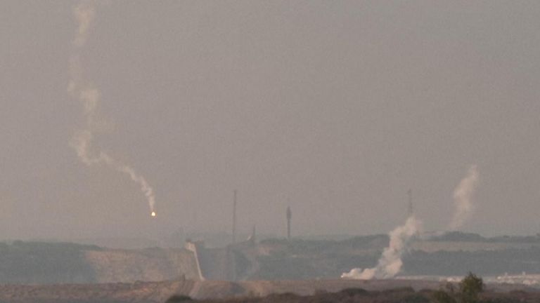 Iarael-Hamas war: Trails and flares seen over Gaza skyline