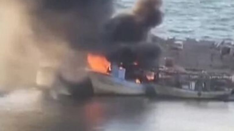 Israel-Hamas war: Fire and smoke at Gaza Port after airstrikes