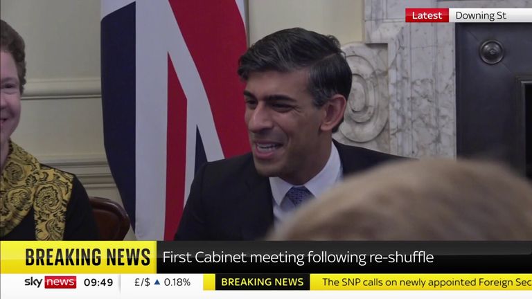 Rishi Sunak holds the first cabinet meeting following the reshuffle yesterday