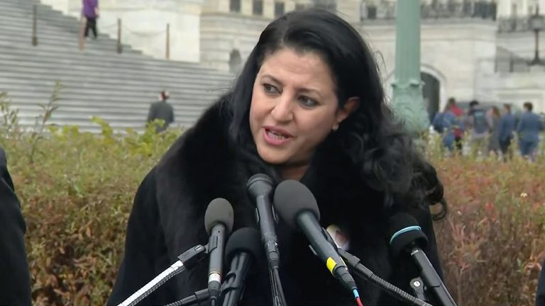 Democrat Representative from Virginia Eugene Vindman and wife of killed journalist Jamal Khashoggi, Hanan Elatr Khashoggi, hold a news conference.